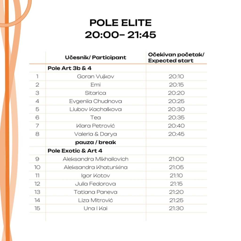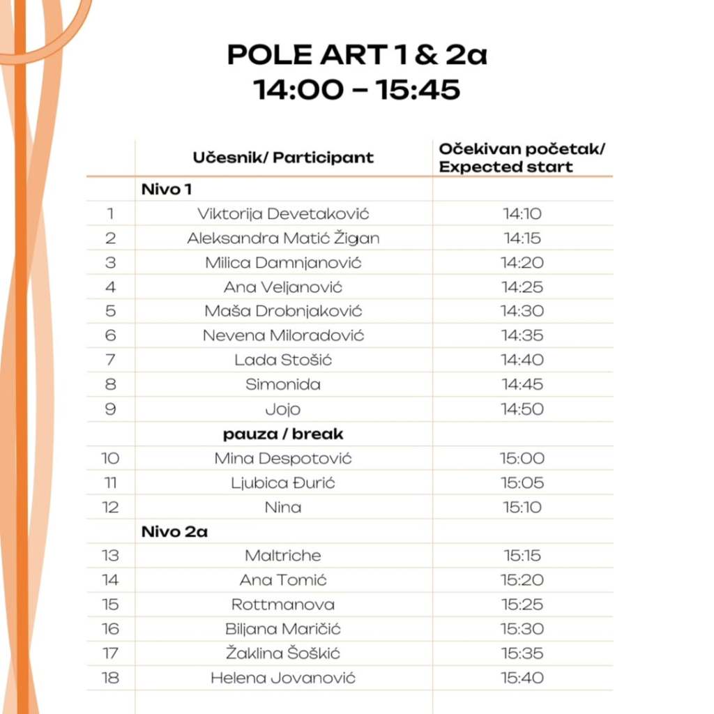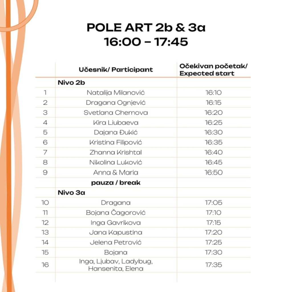 U prvom delu Pole programa, videli smo najhrabrije učesnike, koji su baš našu manifestaciju izabrali za svoje prve korake po sceni, i koji su pripadali prvom i drugom nivou Pole Art kategorije.