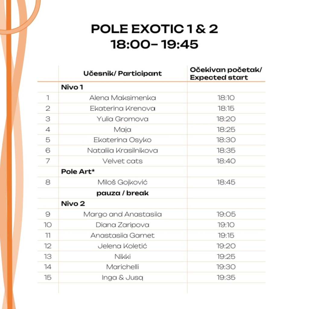 18:00 – 19:45 Pole Exotic 1 & 2